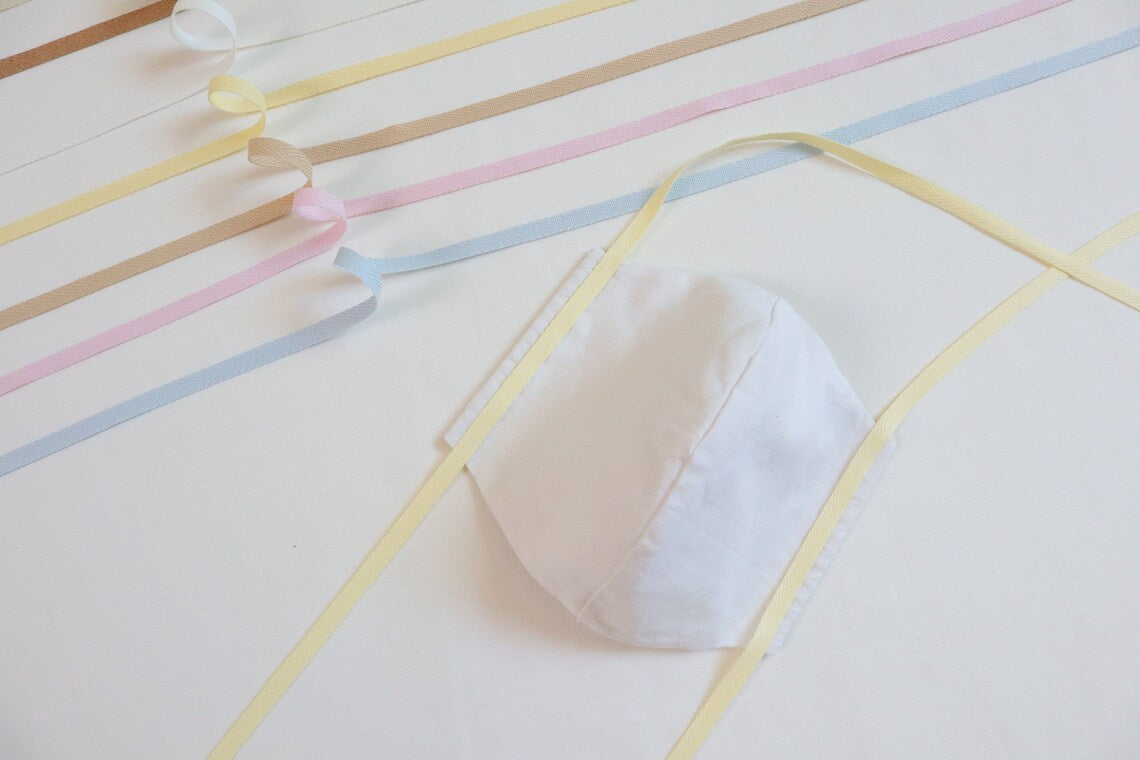 ・素材の特性上、水洗いをすると縮む場合があります。縮む割合を抑える為、リボン、または糸の段階で、一度、ソーピング(水洗い)をしています。